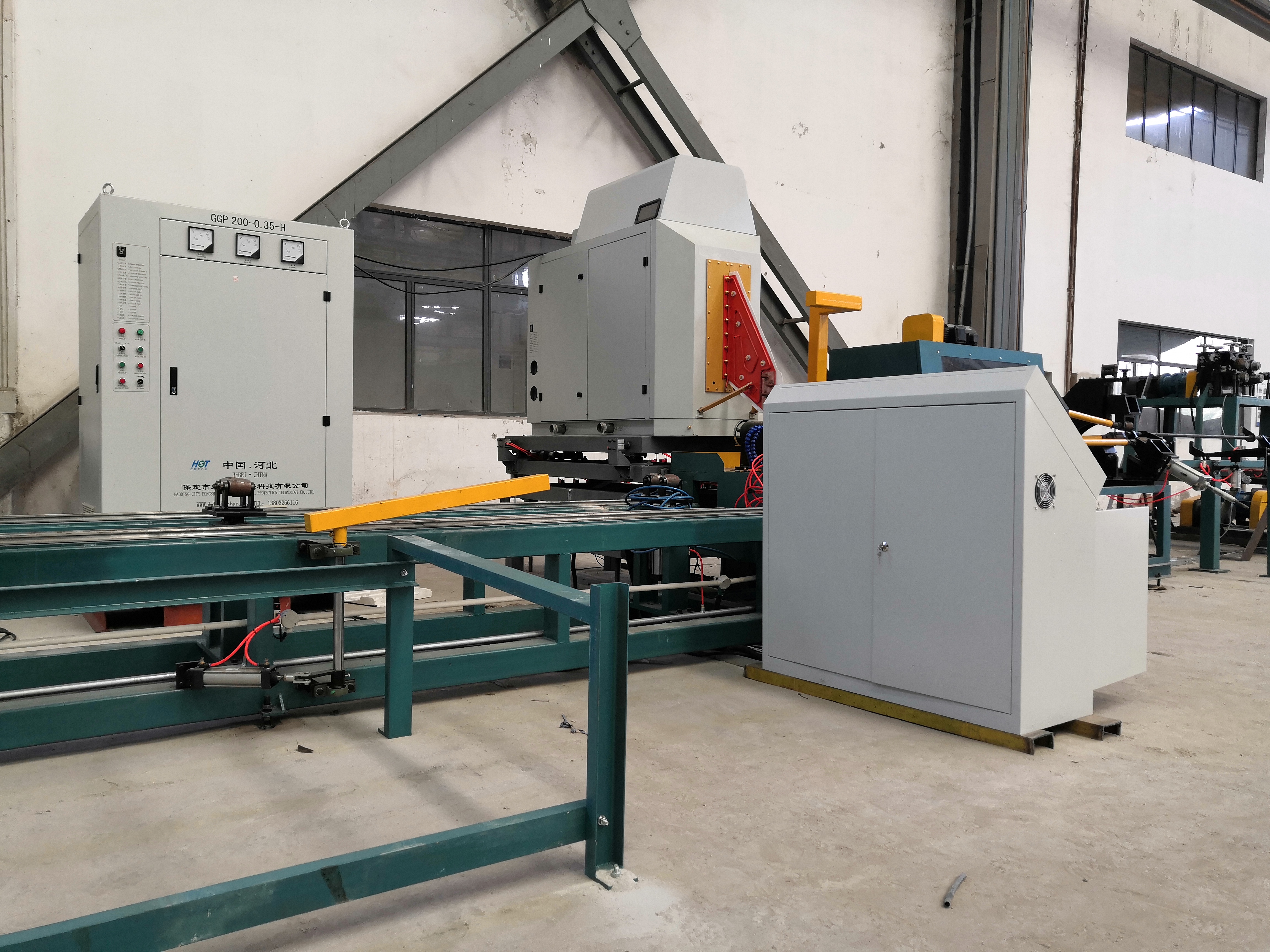 保定市宏順泰環保科技有限公司創立于1989年,位于河北省的保定市競秀工業開發區,毗鄰北京,天津,交通運輸十分便捷,地理得天獨厚。 本公司是生產高頻(激光)螺旋翅片管焊接設備、高頻(中頻)縱向鰭片管焊接設備、H型翅片管中頻焊接設備、高頻焊管成套設備以及新研發的高頻(激光)焊接橢圓形鋼管翅片管焊接設備的專業廠家。目前,公司設有翅片管焊接設備制造部和翅片管焊接制造部。翅片管焊接制造部有高頻翅片管焊接生產線2條,年產翅片管2000噸;激光焊接橢圓形鋼管翅片管生產線3條,高頻焊接橢圓形鋼管翅片管生產線2條,年產橢圓形鋼管翅片管1000噸。 本公司取眾家之優點,專業制造高頻焊片管成套設備,高頻焊鰭片管成套設備,固態高頻焊管設備,電子管高頻設備、高頻設備空冷器、余熱回收裝置、高頻焊管生產線、電腦數控飛鋸、磨齒機等系列設備。其中高頻焊翅片機組和高頻焊鰭片管成套設備是我們公司自主研發的產品。我公司還可以根據用戶特殊需要,設計制作特殊要求的機械設備,來滿足用戶的使用要求。我公司系列產品得到國內新老客戶的一致好評。 “宏順泰”將以先進技術,科學實用、質量過硬的產品和周到滿意的服務,回報公司的新老用戶。“宏順泰”全體員工竭誠歡迎國內外廣大用戶光臨、合作!